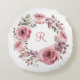 Monogram, Initial Pink Roses Grüne Wasserfarbe Rundes Kissen