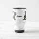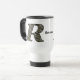 Monogram letter R filled with delicate white hydrangea flowers personalized travel coffee or tea mug. Click on Customize to add text. Great gift idea. This image is available on many products in my gallery.