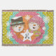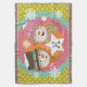 Ein Schneemann in einem Top-Hut, ein Schneemann in einem rosa Winterhut und gestreiftem Schal, ein Hintergrund weißer Polka Punkte auf Senf, Aqua Blau, Rosa und Orange mit einem weißen Stern, den Sie leicht mit Ihrem Monogramm-Initial anpassen können! Dieses hübsche Weihnachtsschneedecke wird Jahr für Jahr ein wertvolles Thema sein!