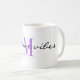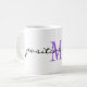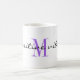 Moderne Schriftzeichen "positive Vibes" und lila Monogramm-Initialen von Single sind auf dieser 11oz Tasse zu sehen. Ändern Sie einfach den Text und den ersten Text, um ihn mit der bereitgestellten Vorlage zu speichern. Große Kapazität für warme oder kalte Getränke. Erhältlich in 11oz und 15oz Kapazität. Weitere Informationen finden Sie unter "Über dieses Produkt" an der Seite.