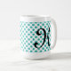 Passen Sie diese niedliche aqua polka dots Kaffee-Tasse an, indem Sie Ihre eigenen Initialen und Schriftart! Tolle Geschenkidee!