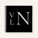 Weiß auf schwarzem Monogramm-Notizbuch.