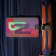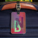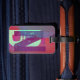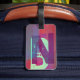 Monogram Initials Grunge Funky Purple Green Art Luggage Tag. Dopamine decor in playful colors. Change the initials to your own. Give as a back to school gift to family, to make their college and university cases unique.