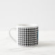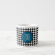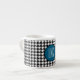 Klassisches Retro-Schwarz-Weiß-Hahnentrittmuster-Muster mit ozeanblau gerahmten Kreisen und platinfarbigen Schriftart-Initialen. Perfektes Geschenk für den speziellen Cappuccino oder Espressotrinker. Ändern Sie einfach die Initialen, um dies mit der bereitgestellten Vorlage zu machen. Weitere Informationen finden Sie unter "Über dieses Produkt" an der Seite.
