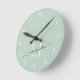 Monogram Initials Names Elegant Script Sage Green Runde Wanduhr