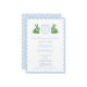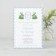 Dieses prächtige 1. Geburtstag Party Einladung Design verfügt über ein Monogramm Single-Buchstaben, flankiert von zwei Hasen in Boxwood Topiary mit Floppy Blue Bows. Wasserfarbenelemente wurden von mir auf 100% Baumwollpapier gemalt und in digitaler Form gescannt. Die Form des Wappen wird von einem anderen Künstler bestimmt. Bitte beachten Sie, dass Sie die Farbe des griechischen Schlüssels auf der Vorderseite und das Muster auf der Rückseite (beide derzeit blassblau) ändern können, indem Sie die Hintergrundfarbe auf jeder Seite ändern. Dies kann innerhalb des Designtools erfolgen (unter den Textanpassungsfeldern, klicken Sie bitte, um das Designwerkzeug aufzurufen).