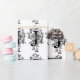 Monogram J Initial Black and White Floral Pattern Packpapier kann mit einem Bild, Namen, Text, Logo oder Foto angepasst werden. Weiße Hintergrundfarbe in Blau, Grün, Gelb, Orange, Rosa, Rot, Braun und lila. Ideal für Weihnachten, Geburtstag, Babydusche oder Hochzeitsgeschenke.
