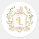 Dieser Baby-Ankündigung-Umschlag Aufkleber verfügt über ein Monogramm-Wappen mit einem Babywagen in neutralem Farbschema.