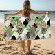 Dieses moderne Design zeichnet sich durch einen geometrischen Hintergrund aus, mit Leopardenprint und Blumenakzenten, mit schönen Leoparden und dem personalisierten Monogramm #leopard #towels #beach #achtowels #gift#gifts #monogram #monogrammedgifts #personalized gifts #swimming #cruise #vacation #holiday