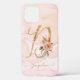 "Monogram Letter D Gold Script Watercolor Floral iPhone 12 Fall." Jeder Brief ist verfügbar. Schauen Sie sich die Sammlung unten an oder kontaktieren Sie uns, wenn Sie Hilfe benötigen! Buchstabe D mit hübschem Wasserfarbenfroh rosa Blüten und Grün über eine moderne Wasserfarbe koordiniert Hintergrund Waschung in pfirsich und rot. Kunst von international lizenziertem Künstler und Designer, Audrey Jeanne Roberts, Copyright.