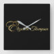 Monogram Letter E Pferd in Goldfarbe Quadratische Wanduhr