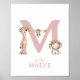 Monogram Letter M Boho Jungle Animal Kinderzimmer Poster