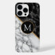 Monogram Letter Schwarz-weiß Marble Personalisiert iPhone Hülle