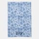 Monogram Light Blue und Navy Floral Pattern Geschirrtuch