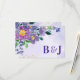 Monogram Lila Blue Floral Wedding RSVP Karte