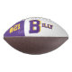 Es handelt sich um einen Fußball in Vollgröße mit einem Panel, das mit einem Monogramm-Namen (großer erster Buchstabe) und einer einheitlichen Zahl in beliebten Unis entworfen wurde. Dieses hier wird in lila und gold gezeigt. Der Fußball ist auch mit zwei weißen Paneelen erhältlich, sodass ein 2. Panel Designs oder Raum für Unterschriften enthalten kann.