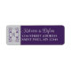 Diese mit Monogramm, grauen und lila blumigen Rücksendeadressen-Aufkleber haben einen dünnen Streifen simulierter Silberfolie auf ihnen, die zum Lila, grauen Liebe Herz Hochzeitsfeier Set passt. Ihr Name(e) und Ihre Rücksendeadresse sind auf einem lila Hintergrund hellgrau, Ihr Monogramm ist lila auf der links Seite der Etiketten zwischen zwei lila Blumenmustern.