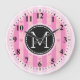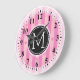 Monogram Lila Pink Stripes Modernes Herzmuster Große Wanduhr