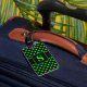 Gepäckanhänger mit einem Kalkgrün auf schwarzem Polka Dotmuster und dem Monogramm. Personalisieren Sie Ihre Monogramm-Initial-und Informationen mithilfe der einfachen Vorlagen. Schriftart, Schriftart und Schriftart sind individuell einstellbar.