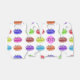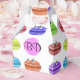 Ein Muster aus niedlichem Macaron-Cartoon auf einem Greifkasten. Küche, Konditorei und Supermarkt Dekor Idee. Originelles Design mit individuellem Monogramm. Ändern Sie den Text, um das Feld zu personalisieren.