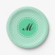 Monogram Magic Mint and White Polka Dot Pappteller