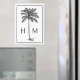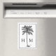 Dieser moderne, an der Küste inspirierte Rechteck-Magnet verfügt über einen prächtigen schwarzen Palmenpalmenbaum auf Weiß mit einem Monogramm, das Sie mit Ihren Initialen personalisieren können. Ideal für Gastgeschenke und personalisierte Geschenktaschen.