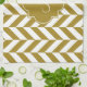 Mit Monogramm metallisches Gold und weiße Herringbones Küchentücher. Das Design zeichnet sich durch ein goldfarbenes und weißes Herringknochenmuster und eine Quarrefolienform in der Mitte aus, mit einem individuellen Initialfoto.