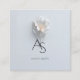 Monogram Minimalist Floral White Blue Quadratische Visitenkarte