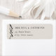 Minimalist wedding return address labels with custom monogram initials and names in modern black and ivory color.