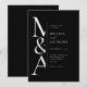 Moderne Minimalistische Schwarz-Weiß-Hochzeitseinladung. Enthält fett formatierte Monogramm-Typografie und minimales grafisches Design. Personalisieren Sie Text mit allen Details Ihres besonderen Tages.