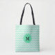 Mit Monogramm, grün und weiß gezacktes Zickzack-Muster All-Over-Print Tote Bag.