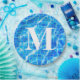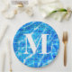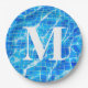 Dieses moderne Design verfügt über einen glitzernden, blauen Pool-Hintergrund mit einem personalisierten Monogramm in moderner Typografie #monogram #mit Monogramm #initiale #personalisiert #Party #partysupplies #tableware #paperplate #Tellers #partyplate #swimming #pool