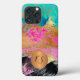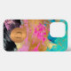Moderne, schicke Handy-Gehäuse mit abstraktem, farbenfrohen, aquamarinen, rosafarbenen, goldfarbenen Imitate-Folie und schwarzen Plexiglas-Pinselstrichen. +++++++++++ Persönlich mit dem Monogramm / Name initial in einer klassisch bearbeitbaren Skriptkalligraphie über einen Kupfergold-Metallkreis personalisieren!