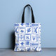 Monogram Modern Blue White Abstrakt Pattern Tote Bag weist ein Muster abstrakter Objekte mit dem eigenen Monogramm in der Mitte auf. Ideal als Geschenk für sie zu Weihnachten, Geburtstag, Muttertag und mehr, ob Freundin, Schwester, Ehefrau, Mutter oder Freunde. Erstellt von Evco Studio www.zazzle.com/store/evcostudio