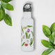 Das Produktdesign zeichnet sich durch farbenfrohe Tulpenmuster in lila, roten, rosa, blauen und gelben Blume aus. Diese botanische Abbildung mit personalisiertem Text macht eine moderne und einzigartige Wasserflasche.