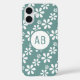 Monogram Modern Girly Floral Pattern Personalisiert iPhone 16 Case zeichnet sich durch ein trendy weißes Blumenmuster mit Ihrem personalisierten Monogramm aus. Personalisieren Sie diese, indem Sie den Text in dem dafür vorgesehenen Textfeld bearbeiten. Für Sie entworfen von Evco Studio www.zazzle.com/store/evcostudio
