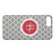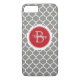 Ein hübsches, graues und rotes, modernes personalisiertes Handy-Gehäuse mit einem Quarrefolienmuster im Hintergrund. Fügen Sie Ihr Monogramm und Ihren Namen hinzu. Entworfen für Sie von BlackBerry Boulevard.