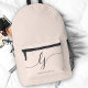 Monogram Modern Minimal Blush Pink Script Initials gedruckter Backpack