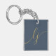 Monogram Modern Minimal Elegant Navy Gold Script Schlüsselanhänger