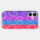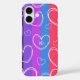 Monogram Modern Stripe Liebe Heart Girly iPhone 16 Hüllen verfügt über ein farbenprächtiges gestreiftes Muster mit Liebe Herz und personalisiert mit Ihrem individuellen Monoggramm in simplen Kalligraphie Skript Typografie. Personalisieren Sie den Text durch Bearbeiten in den bereitgestellten Textfeldern. Designed by ©2024 Evco Studio www.zazzle.com/store/evcostudio