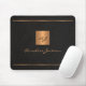 Luxuriöses exklusives, mit Monogramm und personalisiertes Mousepad mit einem vergoldeten Kupfer Metal Glitzer Quadrat und Linien auf einem stilvollen schwarzen Lederhintergrund. +++++++++ Personalisieren Sie es mit Ihren Text-, Name- und Monogramminitialen.