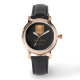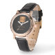 Luxuriöse elegante schwarze Lederuhr für Frauen mit einem goldenen Glitzer mit Monogramm Platz und personalisierten Namen Signatur.
