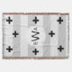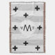 Moderner skandinavischer Stil monochrome Decke mit grauen und weißen Streifen und schwarzen Pluszeichen. In der Mitte befinden sich personalisierte Monogrammbriefe in dickem schwarzen Fettdruck.