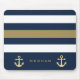 Nautische 2-Töne Streifen mit benutzerdefiniertem Monogramm in Serif-Schriftart mit Ankern auf beiden Seiten. Wählen Sie die gewünschte Farbe und personalisieren Sie sie mit Ihrem eigenen Monogramm oder Firmennamen