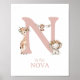 Monogram N Boho Jungle Safari Tiermauer Poster