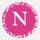 Monogram N Fuchsia White Custom Wedding Monogramme Runder Aufkleber