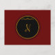 Monogramm 'N' goldenes Skript auf schwarzen Kreis, dunkelrote Postkarte.