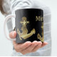 Monogram Name Black & Imitate Gold Nautical Anker Jumbo-Tasse