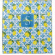 Monogram Name Blue French Tile Lemon Pattern Duschvorhang