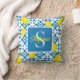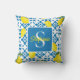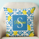 Monogram Name Blue French Tile Lemon Pattern Kissen